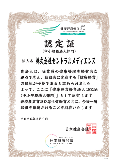 当社は2026年3月9日付にて、経済産業省および日本健康会議が選定する「健康経営優良法人2026(中小規模法人部門)」に認定されましたことをお知らせいたします。